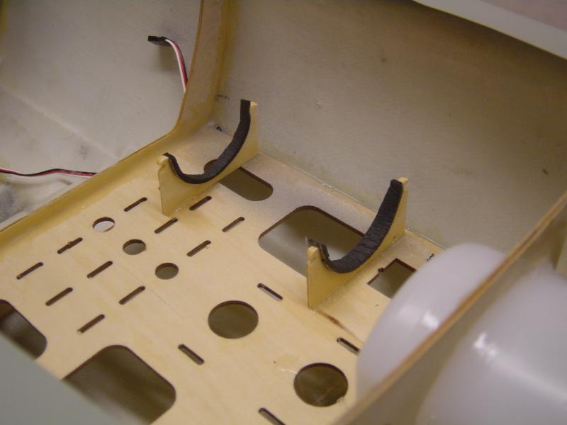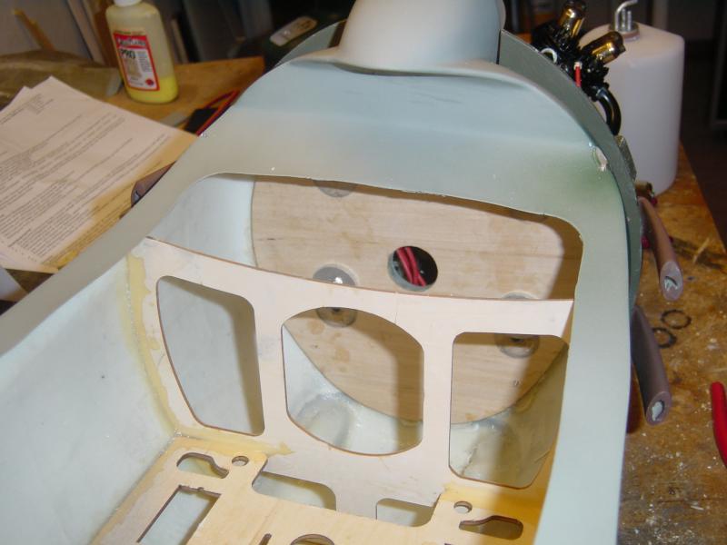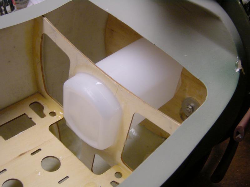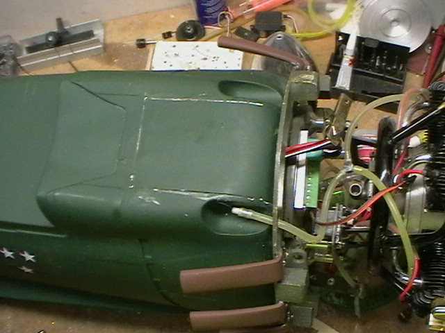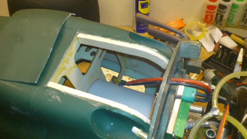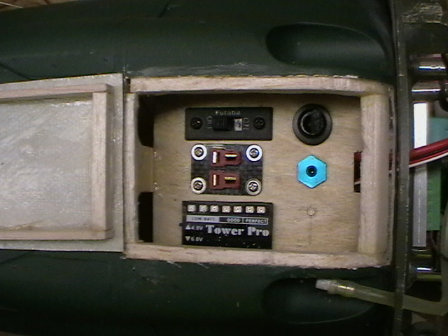 Fick fundera en hel del innan jag bestämde mig för att det minst störande utseendemässigt var att skära upp en "panel" i nosen. Fanns en "naturlig plåtskarv" som passade bra. Skurit upp med en xacto-såg som ger ett fint snitt. Limmat dit ett par balsalister som stöd för luckan.