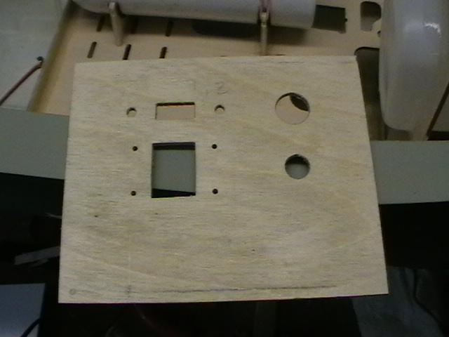 Fräst ut hål för brytare och laddning mm. i en 2 mm plywood.