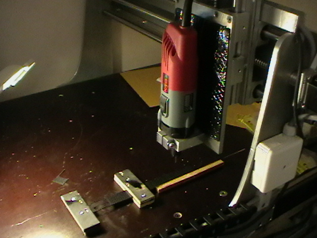 Riggat en kolfiberplatta som skall fräsas till ett chassifäste för Dean-kontakterna.