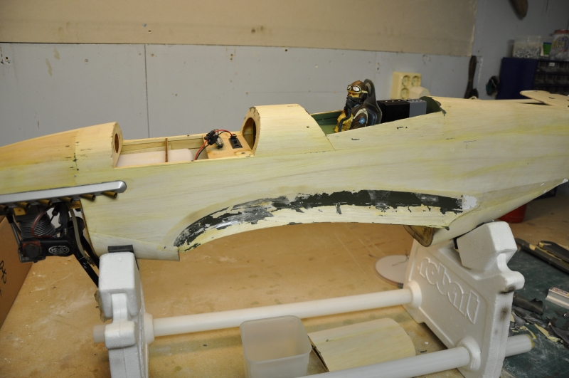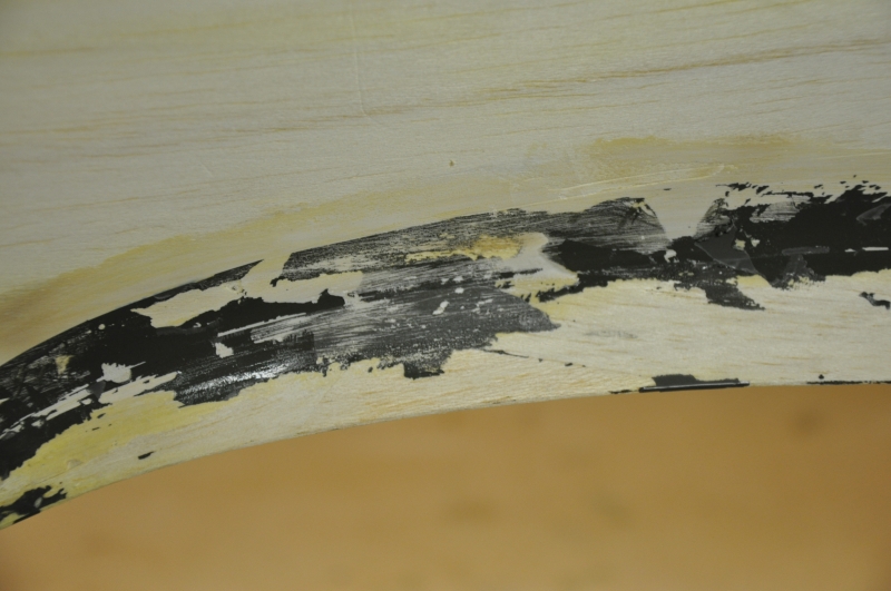 Värst var vid fenan och vingsadeln där det spacklats, och det verkar som att klädseln sitter 10ggr bättre på de spacklade ytorna än de trä rena ytorna.