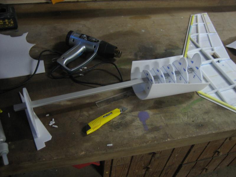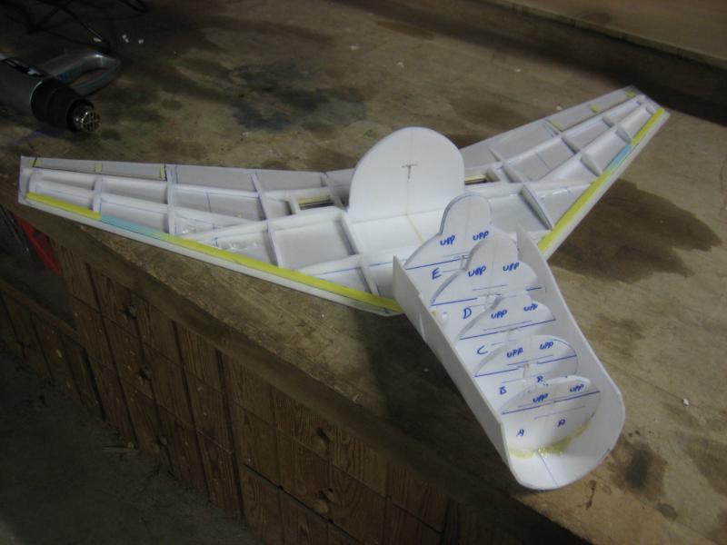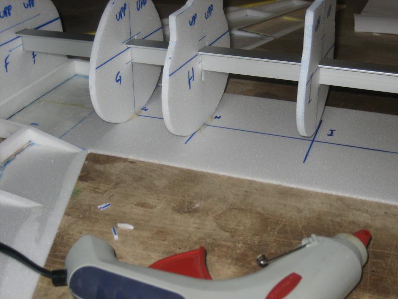 Insidan av vingen har fått 80gr glasfiber och en kolfiberstång som "vingbalk".