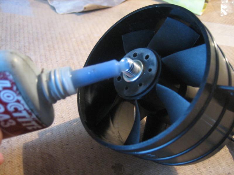 Axeln i motorn är skev eller så är det dåliga lager. Det kan vara adaptern som inte är helt ok också. Det hela vibrerar fint både med och utan fläkthjul så det blir bara att slänga ihop allt, låsa med loctite och hoppas att allt håller.