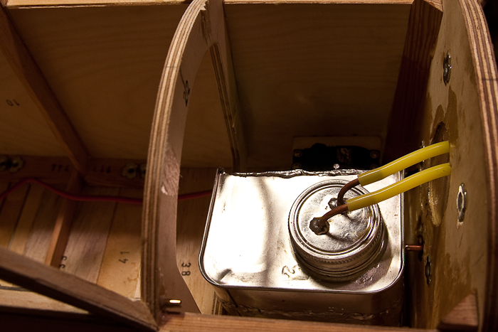 Då min fantastiskt fina placering av medföljande tank visade sig komma alldeles för högt, (såg det inte förrän efteråt), så blev det till att fundera, vända o vrida, fundera igen och efter viss support lades den medföljande tanken åt sidan och en ny tillverkades.