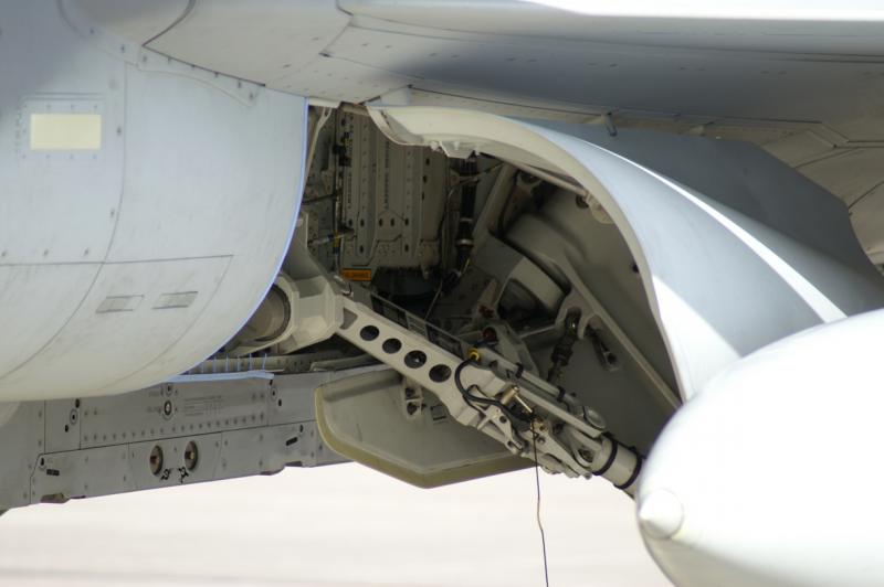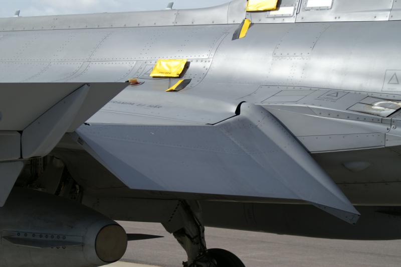 Här syns de flesta luckorna runt nosen rätt bra. De små vingarna som sitter på luckorna är alfagivare som håller reda på anfallsvinkeln på flygplanet.