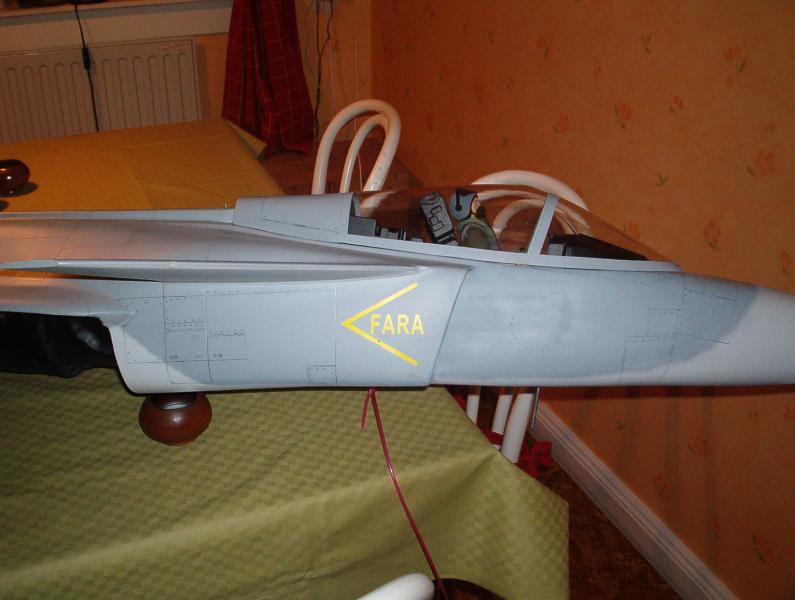 idag har det blivit lite mer linjer på 39an och hennes deltavinge, bilder på det kommervar det lider. Det elektriska fronstället är också på plats. Någon som vet vad det bronsfärgade äckel luftstället är av för märke. Är det något att ha eller är det bara att slänga?