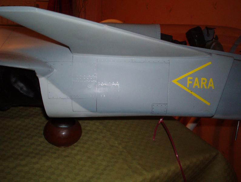 Efter mycket vånda och suddande, så får det nog bli så här. De färdig gjutna linjerna ställer till en del problem, då dom inte hamnat där dom skulle i gjutningen, samt om man inte använder dom, så stör dom helheten en del. Javisst går det att spackla igen och måla om, men då får det hellre bli lite hemsnickeri. Hur som, så hoppas jag att slutresultatet i alla fall blir hyfsat. Än en gång tack för bilderna Niklas. I morgon ska resterande linjer på kroppen ritas, samt att vingen ska monteras och få sig en omgång av blyertspennan.