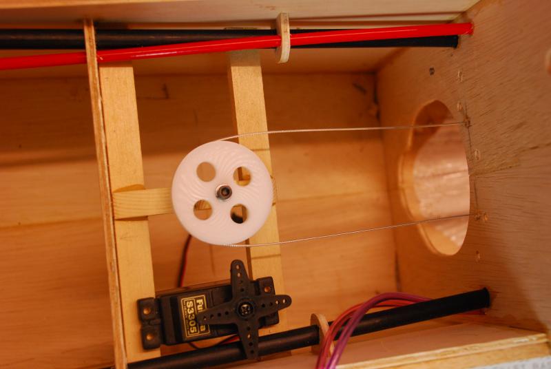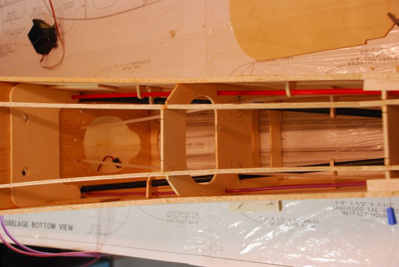 Alla snakes är på plats och likaså slangen för stället. De svarta är för höjden, den röda för styrning av sporrhjulet och de mjölkvita är för pull-pullen till sidan. Det verkar gå riktigt bra att dra viren i innerdelen till Sullivans plaststötstänger trots att det inte är raka spåret så att säga. I "bakändan" av brythjulet kommer jag att fästa viren. Hur vet jag inte ännu.