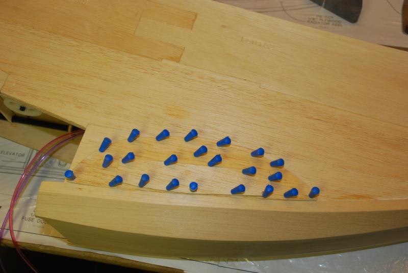 Efter det har jag format radiatorhörnen enligt en bifogad mall. Här var det 1/4" balsa! Det lär inte vara något problem om det bli buklandningar!!!