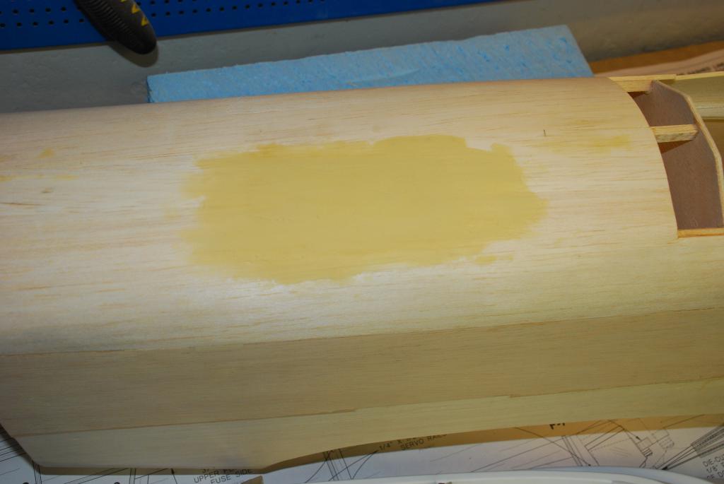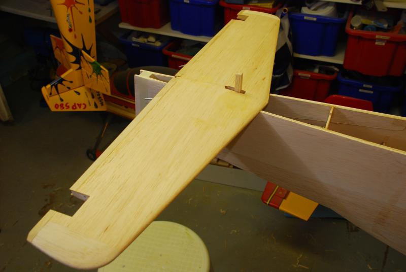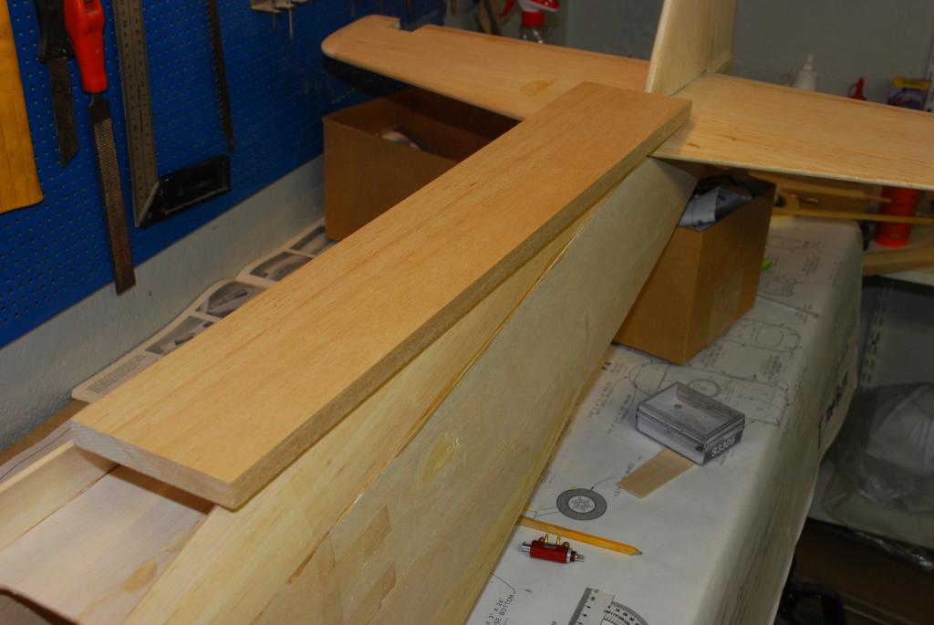 Nu har jag äntligen gjort klart stabben. Alla hål för gångjärnen är borrade och uttaget för "balancetab" är klart och stabben är fastlimmad i kroppen. Det här var ett ganska tråkigt moment, men nu är det i alla fall klart.