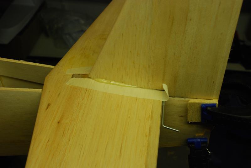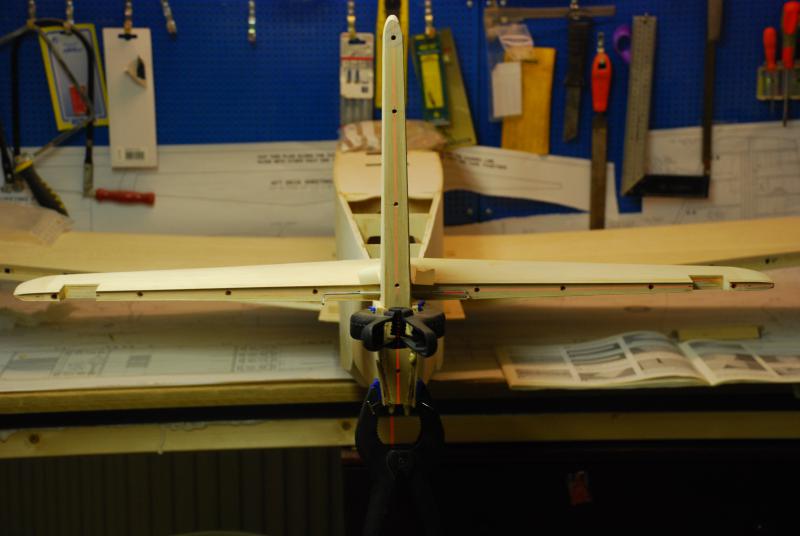 Jag inser att jag har varit lite slarvig med min tråd den sista veckan, men det har varit långa dagar på jobbet och annat som jag behövt göra på fritiden. Jag har hur som helst limmat fast fenan efter att jag borrat hål för gängjärnen i både fena och sidroder.