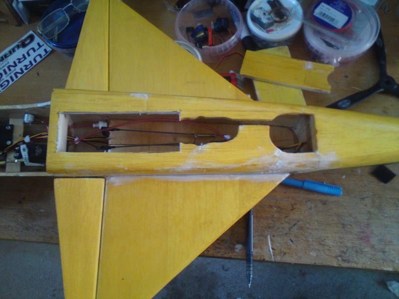 så nu ska jag renovera den till topp skick igen och då ska den flyga. Den var väldigt tung vid maiden, gammla servon, och allmänt kraftigt byggd.