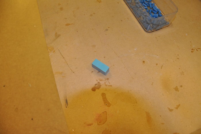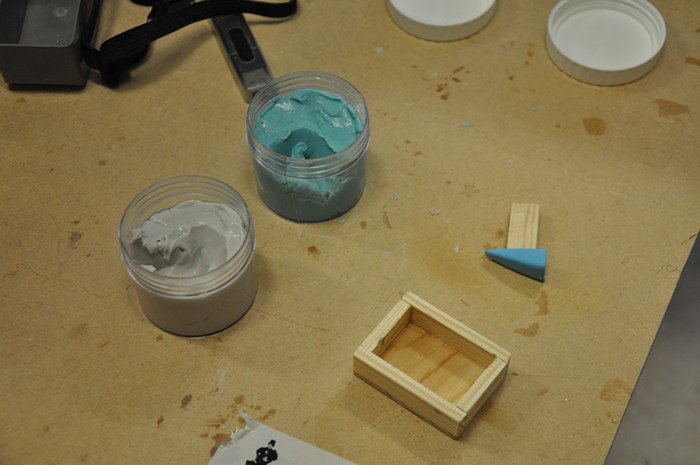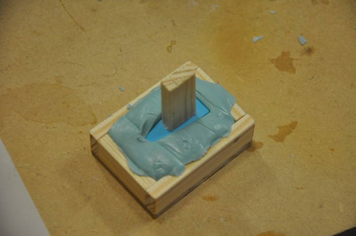 Jag drog mig till minnes att jag hade lite gjutformssilicon i lokalen, så det togs fram. En form tillverkades och siliconen blandades ihop. Den behövde bara 5 minuter på sig från första knådningen till färdighärdad. Så jag fick jobba fort.