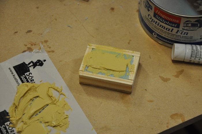 När siliconet var härdat så blandade jag ihop en bilspackel mix och smetade ned i hålet efter pluggen.