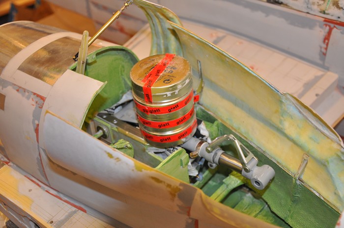 Så var första steget mot att få en annan vinkel på landningsstället avklarat. Nästa steg blir att snygga till lite innan jag kletar dit lite mer epoxy/microfiber mix på bokstavarna framme vid spantet.