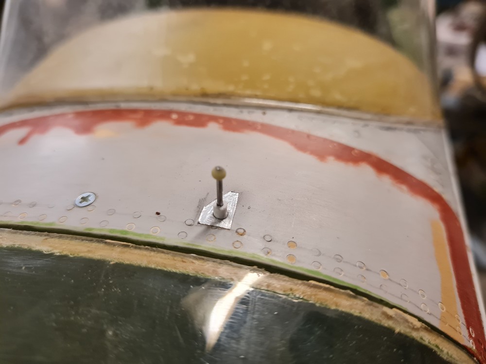 Jag hittade ett hål på ovansidan av kroppen....som tur är så passar toppskyttens huv perfekt där.
