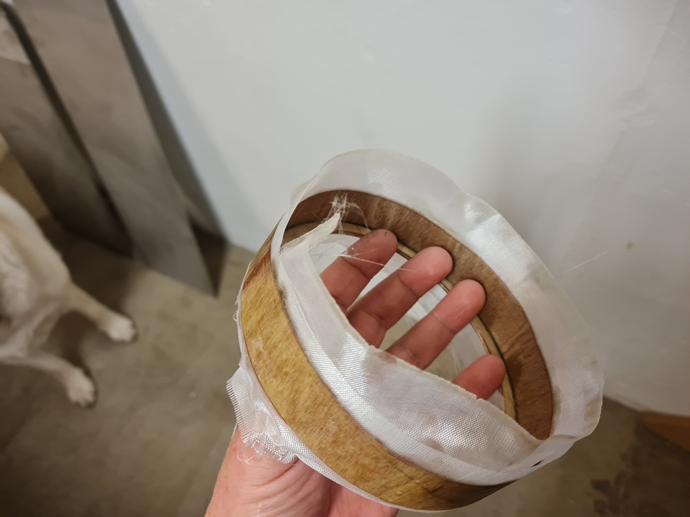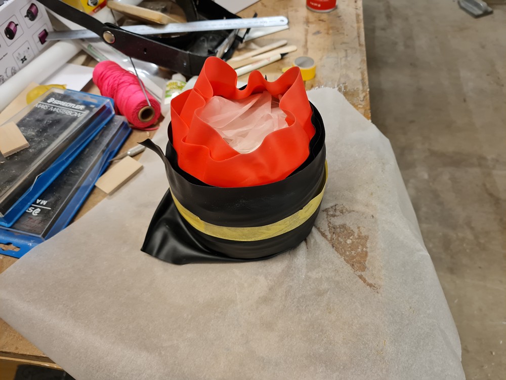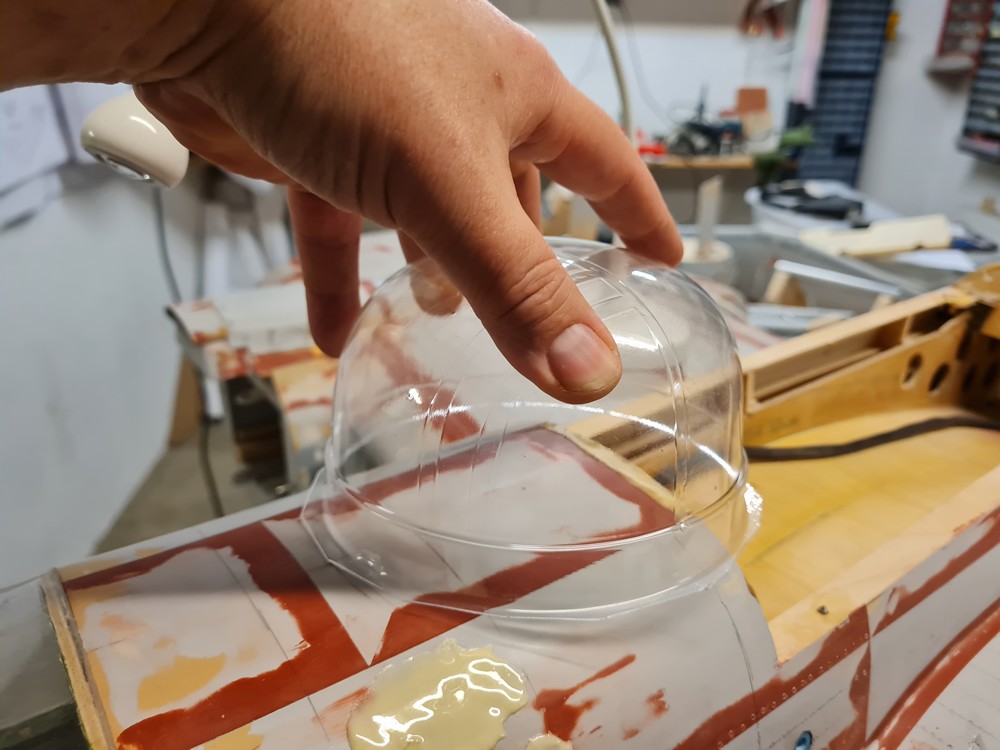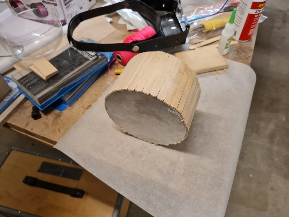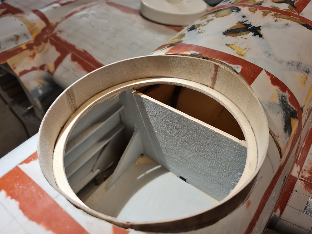 En ring av plywood tillverkades och limmades på plats. Den här ringen blir den som huven kommer att vila på.