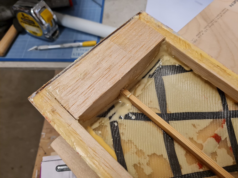 Det första steget blev att fylla ut de första 40 mm med balsa med en microballong/epoxy blandning...som får torka tills imorgon.