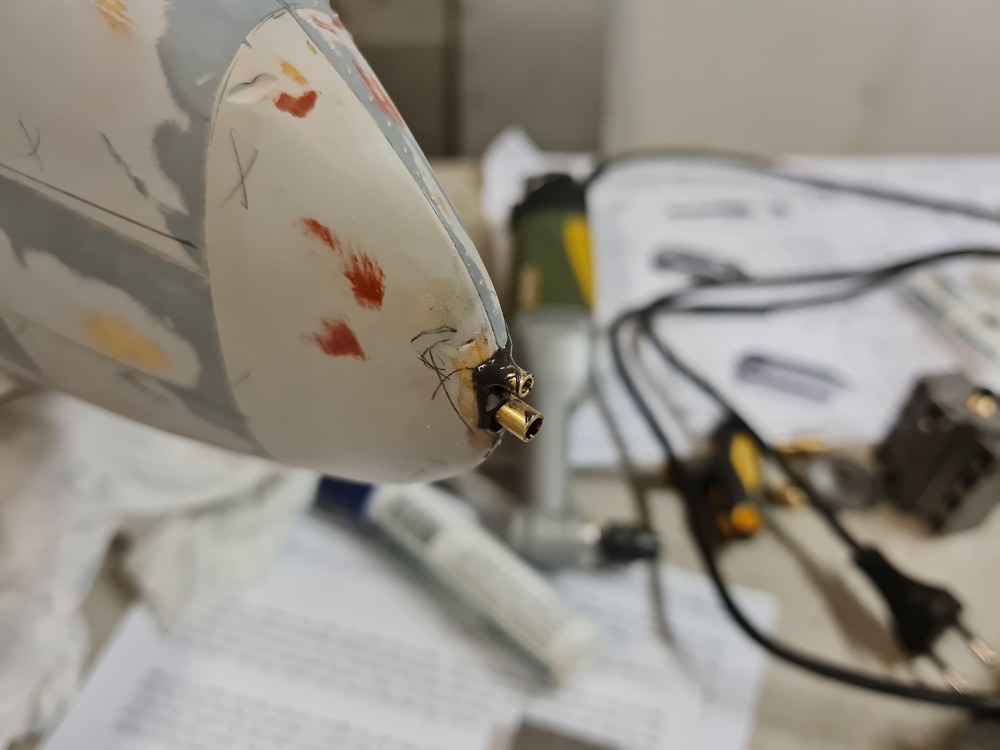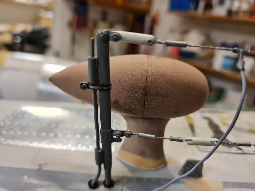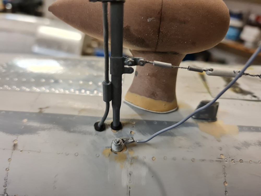Jag målade den bruna tråden så den ser lite mer ut som en vajer.