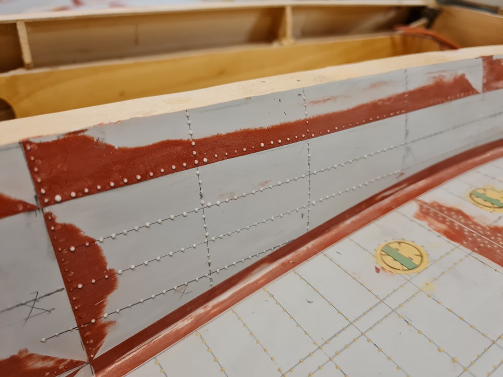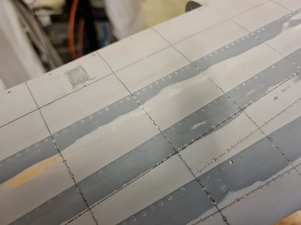 De sista panellinjerna slipades och nu börjar studierna av en massa foton för att se var de olika nitarna skall sitta.