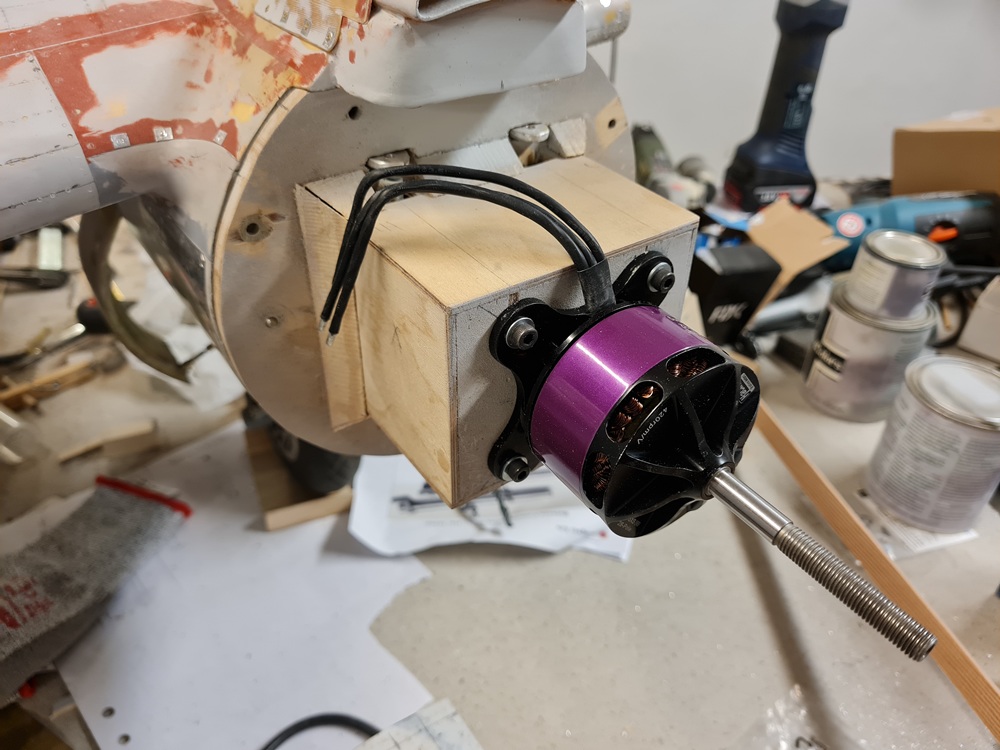 Hacker motorerna har ett lite annorlunda bult mönster än de motorer som jag hade borrat för så det blev en smärre modifiering här med.