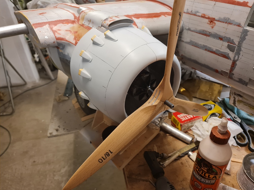 Motorkåporna tillbaka på plats...och då var jag ju tvungen att ta mig en titt på hur det ser ut med propellrarna där de skall hänga.