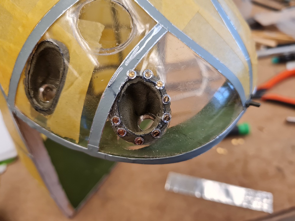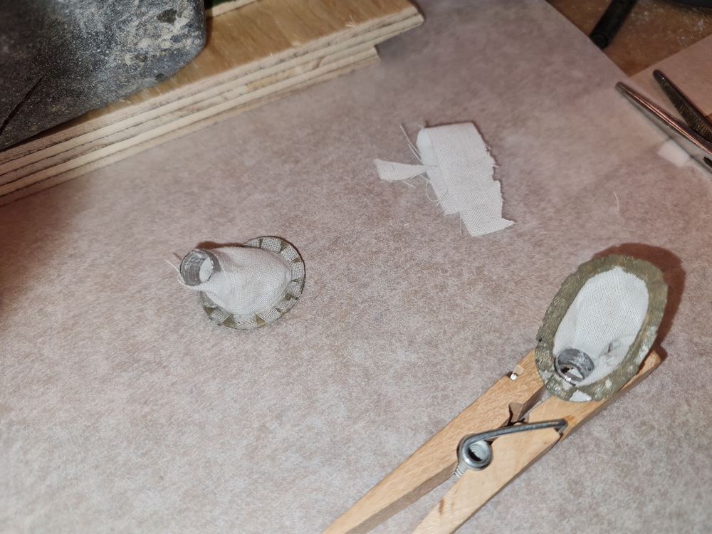 Det här skall bli ringar som håller kanvasen runt kulsprutornas pipor på plats mot kabinhuven.