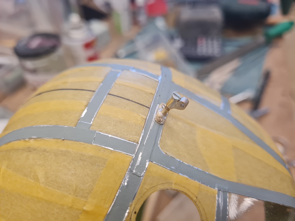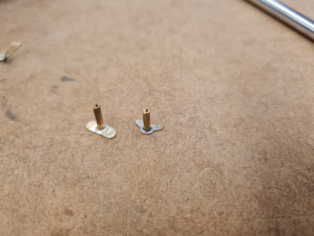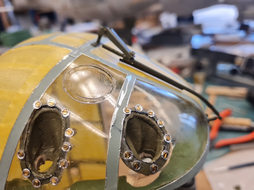 Blivande fästen till nosskyttens vindrutetorkare. Rören är 2 mm i diameter.
