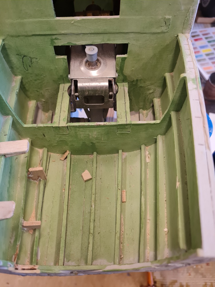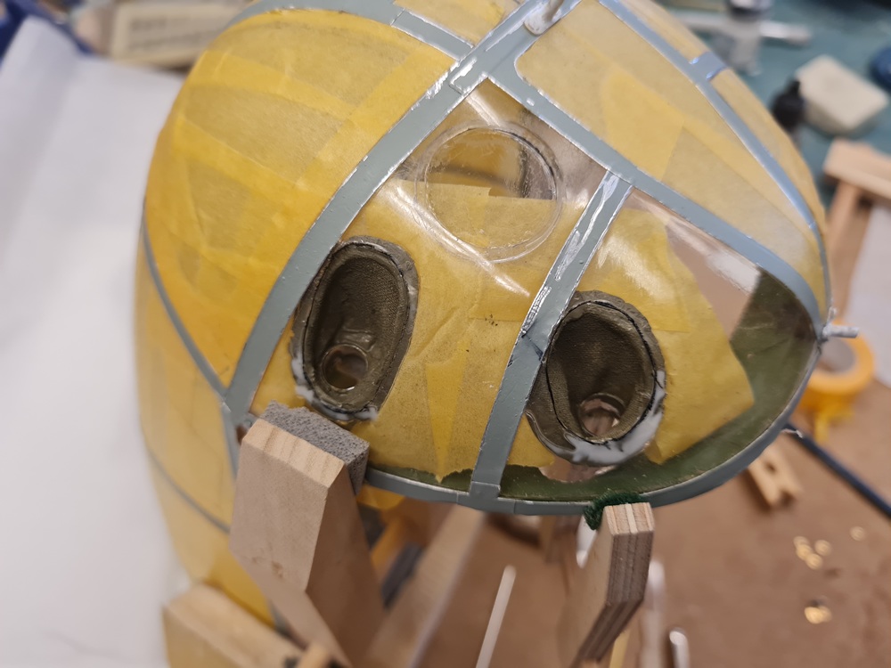 Medan limmet torkar så började jag klä in nosställets mekanik i nosskyttens utrymme så jag kan installera kulsprutorna.