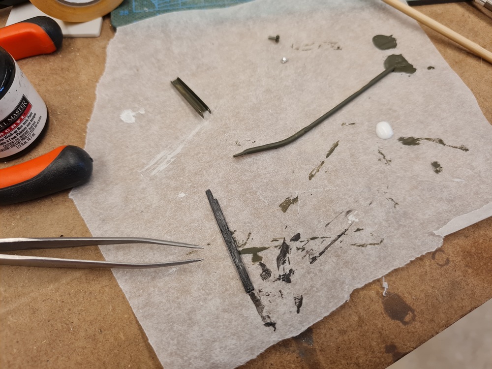 Målningen av vindrutetorkarens delar fortskrider sakta men säkert.