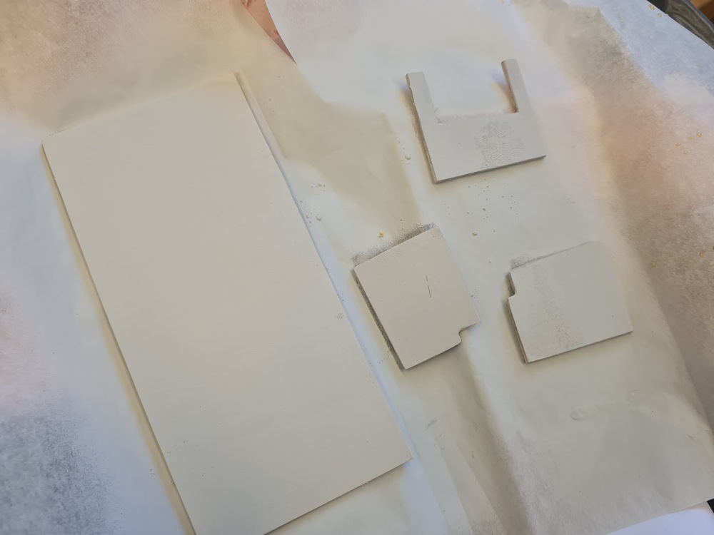 Det skall bara på ett lager färg till på kanvasstrutarna så är de redo för att limmas på plats.
