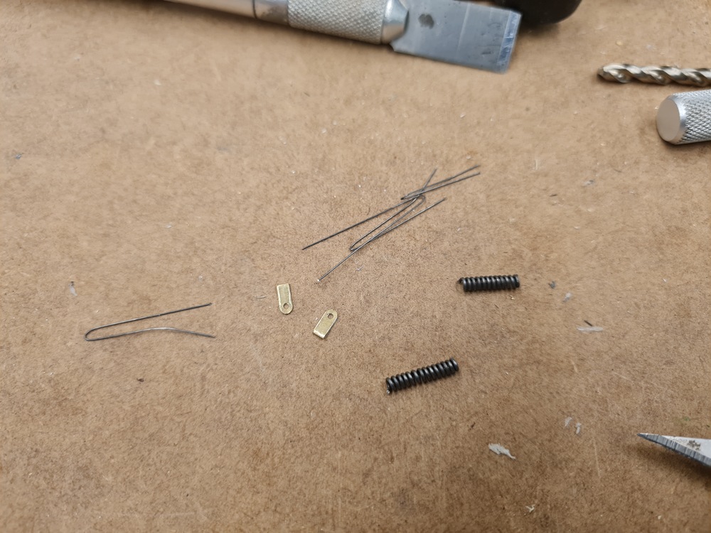Lite mer delar tillverkade av 0,3 mm pianotråd och 0,15 mm mässingsplåt.