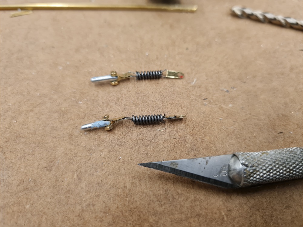 Först två fjädrar tillverkade av 0,6 mm pianotråd.