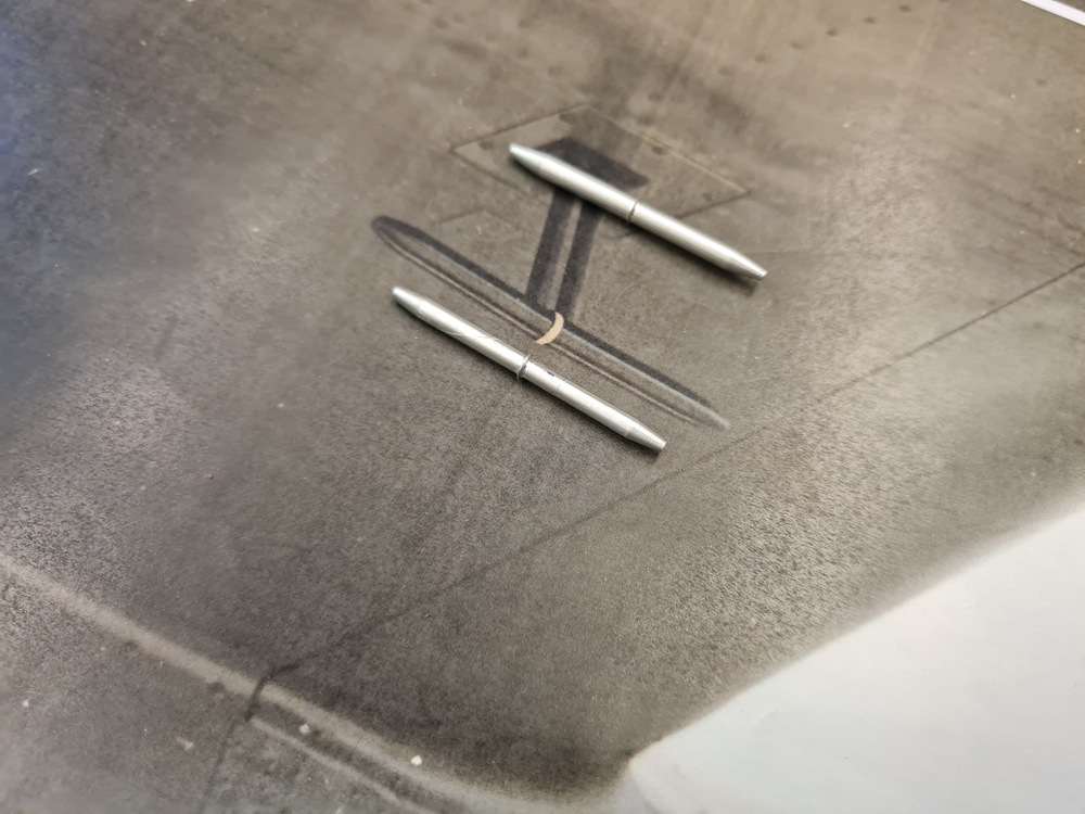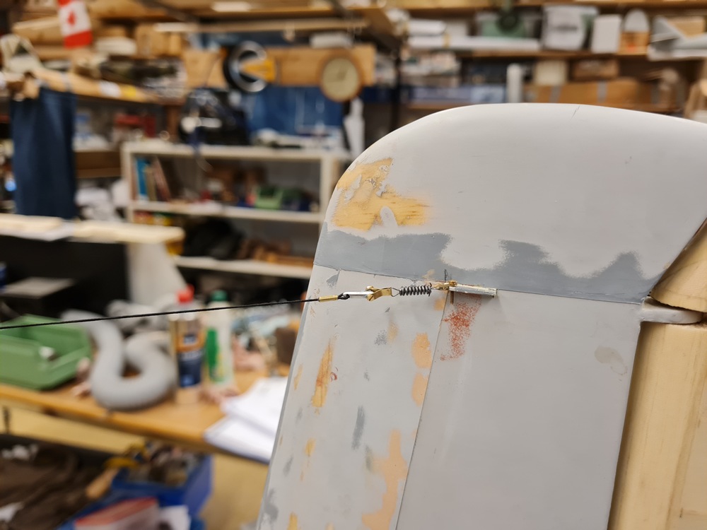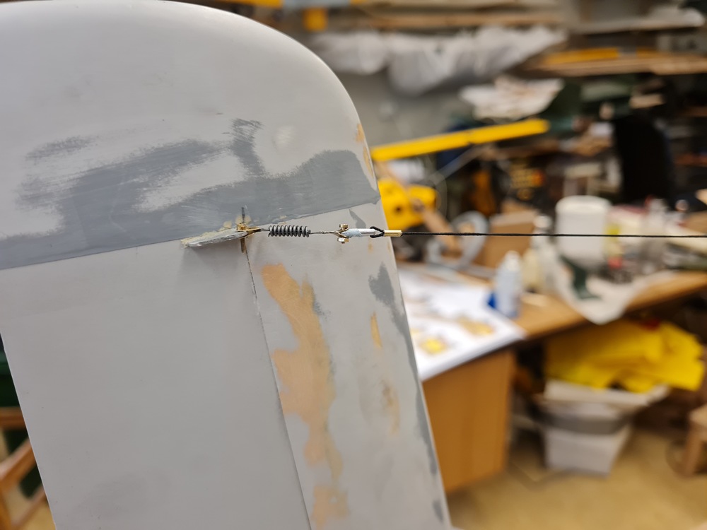 Antennvajern på höger fena kopplades ihop med fjädern idag.