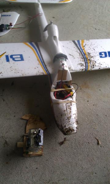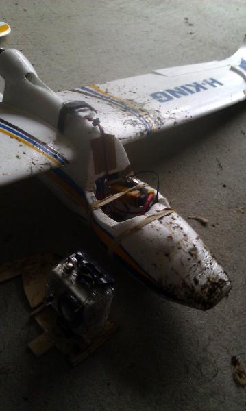 Jahopp, så hände det då, mer förr än senare. Som jag påpekat någon annan gång i en annan tråd så var fästet för kolfiberstaven som håller ihop vingarna dåligt limmat i ena vingen och spräcktes första flygningen. Den gången lyckades jag lugnt och fint landa den. Nu hände det igen, på andra vinghalvan. Skulle styla mig lite och loopa medans en bekant tittade i fpv glasögonen... Istället för 3 knappnålshuvuden med lim hade de satt 5 knappnålshuvuden där. Den här gången hade jag inte samma tur med att lyckas få ner den lugnt och fint, och dessutom hade jag en hel del elektronik etc i den.