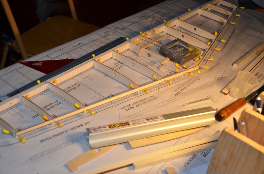 Började dagens session med att limma dit de bägge sk "Rib Cap" av 3/32" balsa.