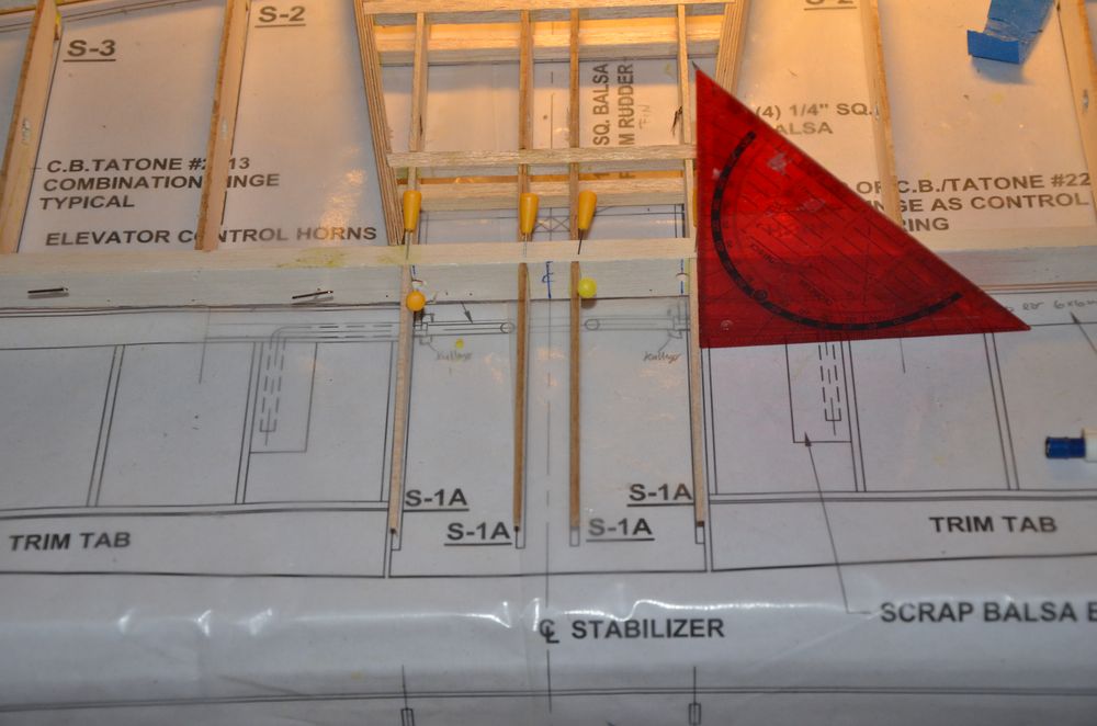 Jag vet att kanske några av er kommer att ha synpunkter på detta då jag ännu inte helt till 100% löst säkringen av stabbhalvorna, likaså linkaget till höjdrodret. Men jag tänkte att jobba mer med det från stabbens undersida och då ev utelämna plankningen av mittsektionen tillsvidare. Eller helt enkelt göra som Göran och lösa det i samband med monteringen av stabben på kroppen.