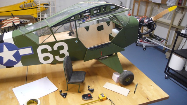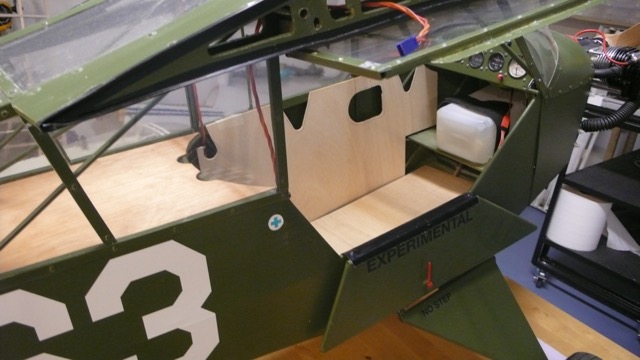 Aktualiserar den här gamla tråden igen för lite uppdateringar. L4an är just under våröversyn och i samband med den skall den få lite inredning som inte blev av när den byggdes. Har än så länge lött ihop ett skelett till framstolen och sågat ut golv, kabinsida och golv i "växthuset" av 2mm lättplywood. Printat delar till throttle- och bränsle-reglage. Har också fått kära hustrun att sy dynor till framsitsen....
