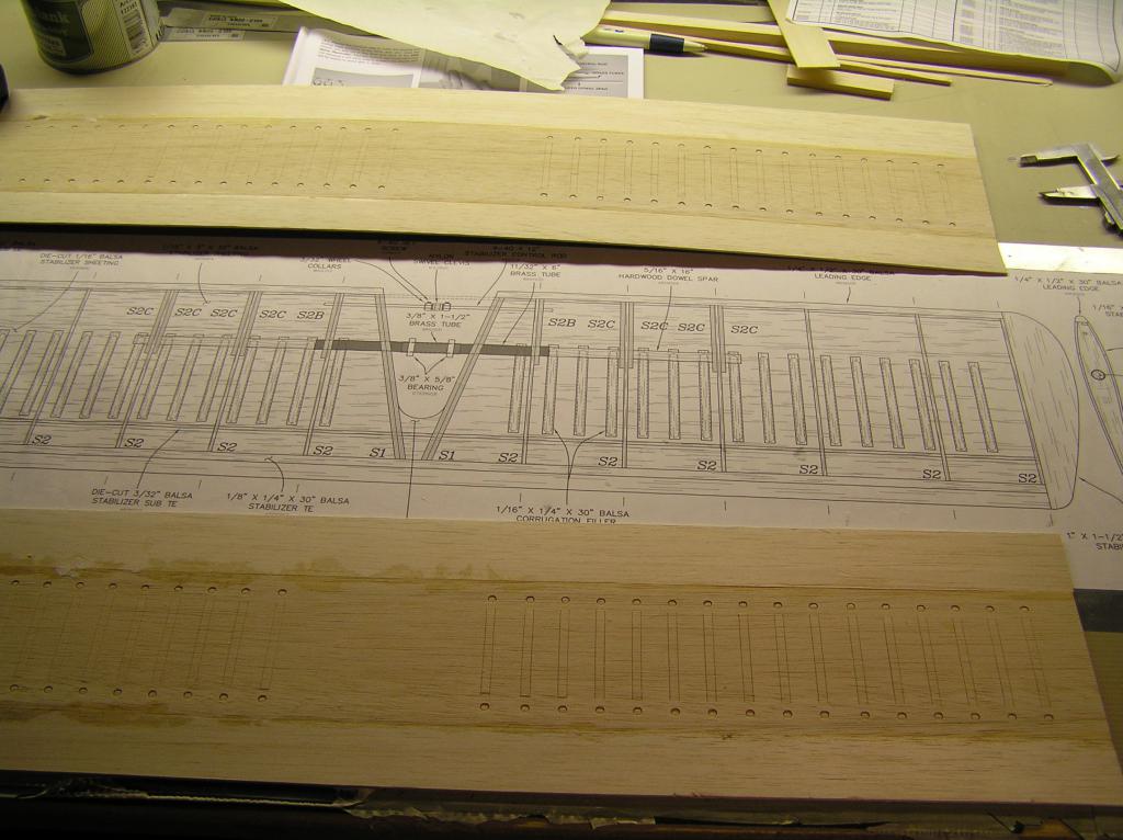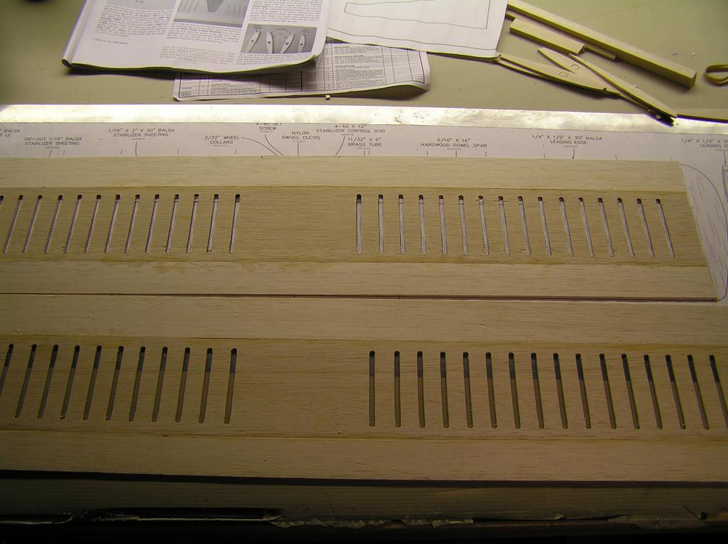 först hål i beklädnaden o sedan tunna balsaribbor för