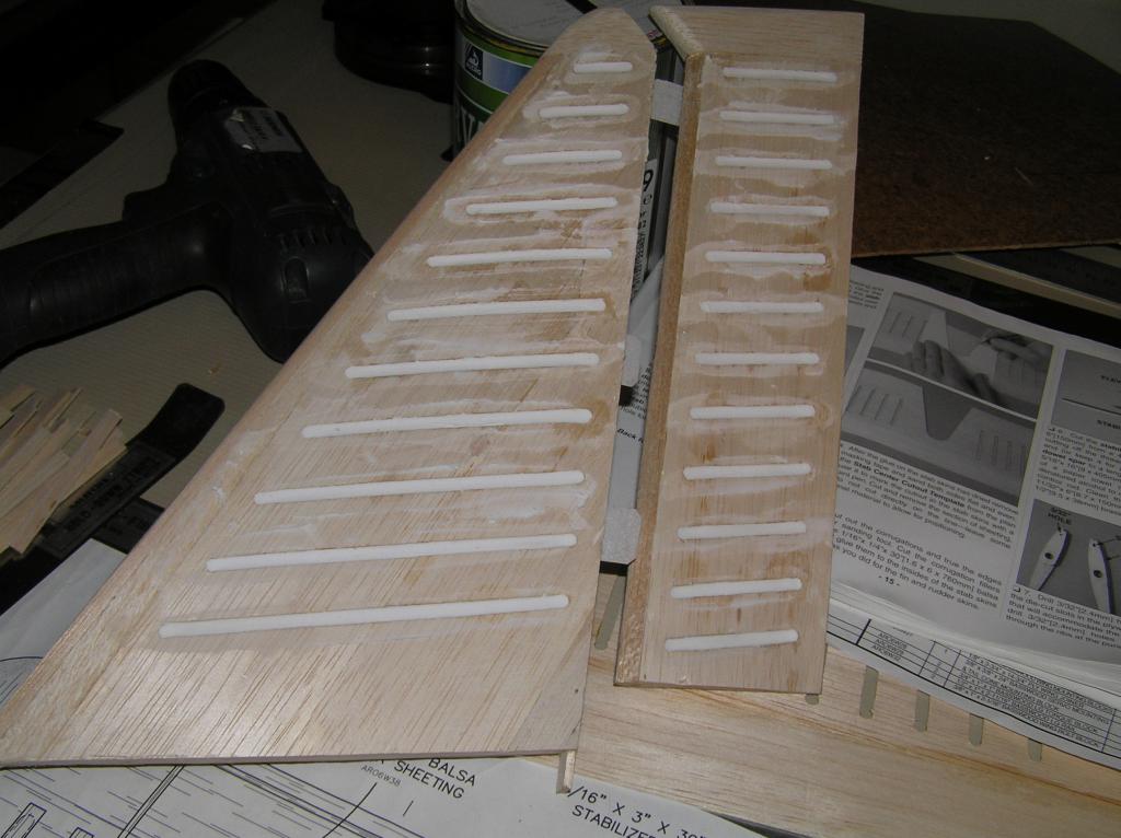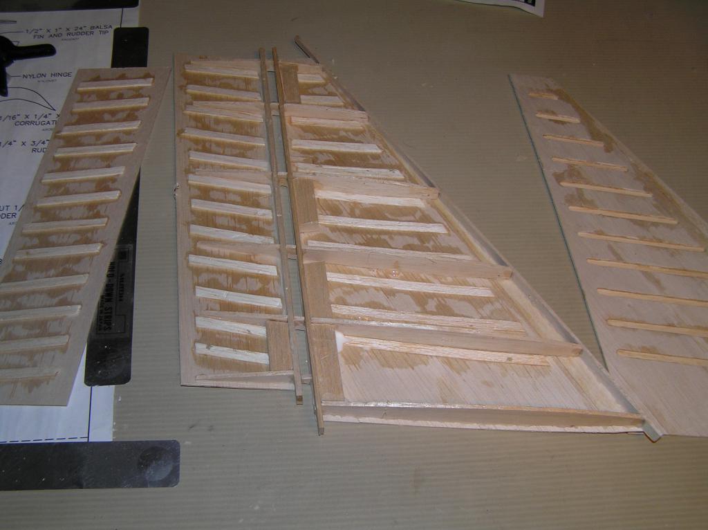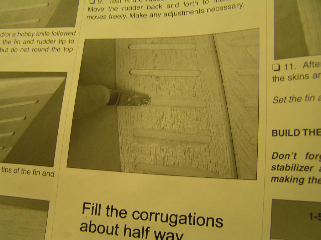 Testade att fylla korrugeringen på fenan o sidorodret.