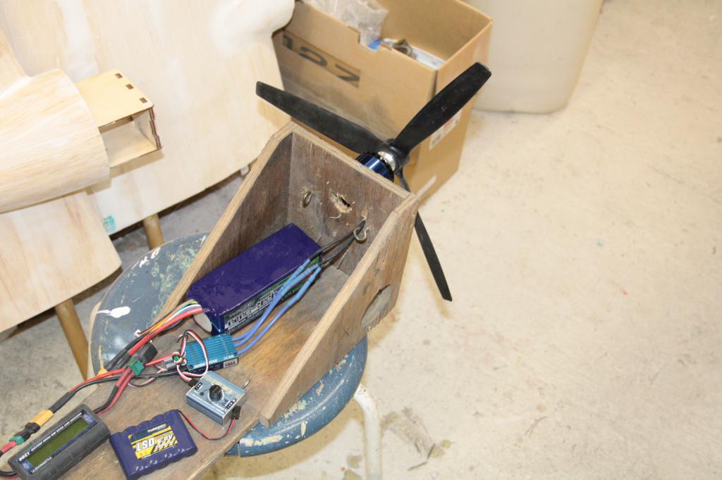 Ovan synes testbänken för motorn som provkördes med icke oansenligt drag i (skrället kommer att ha över 20 kg: s dragkraft på nåt som väger mindre än det) ock en motorkåpa med en spinner,jag tycker det blir snyggt som attan!