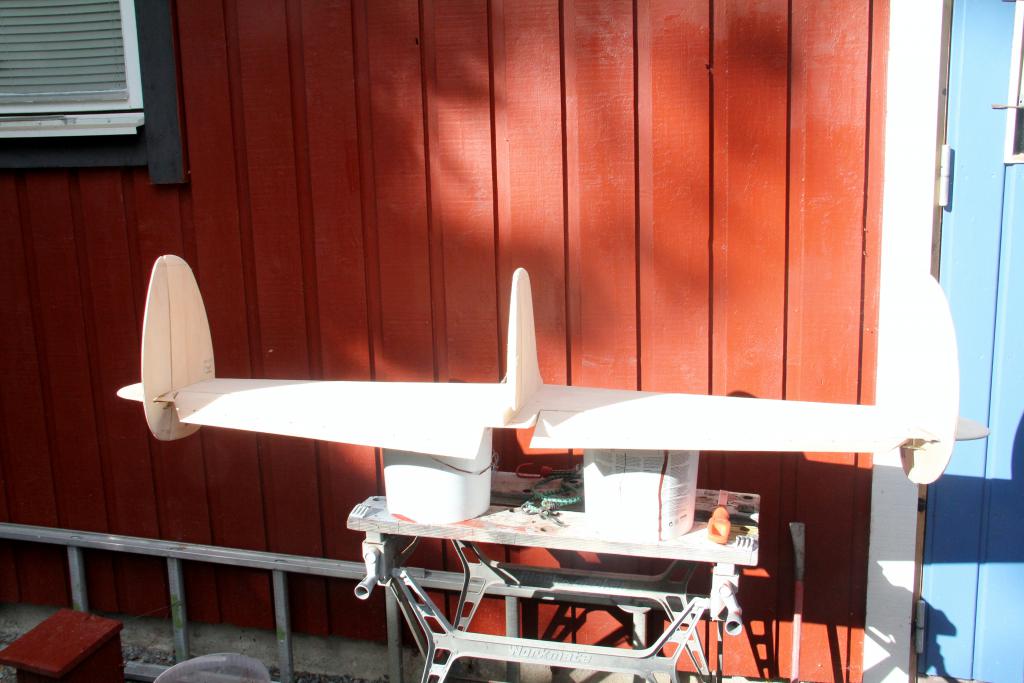Idag har solen skinit över honom så han tog ut den oflygande vingen i den svenska sommarvärmen för att begrunda "projekt glasning".