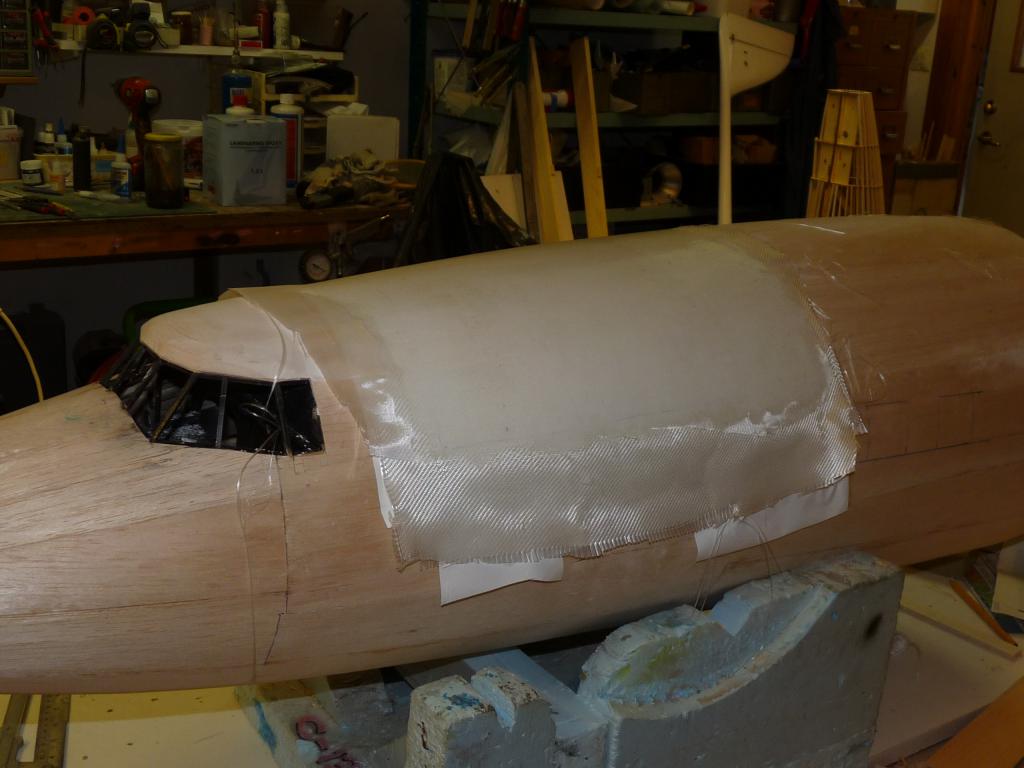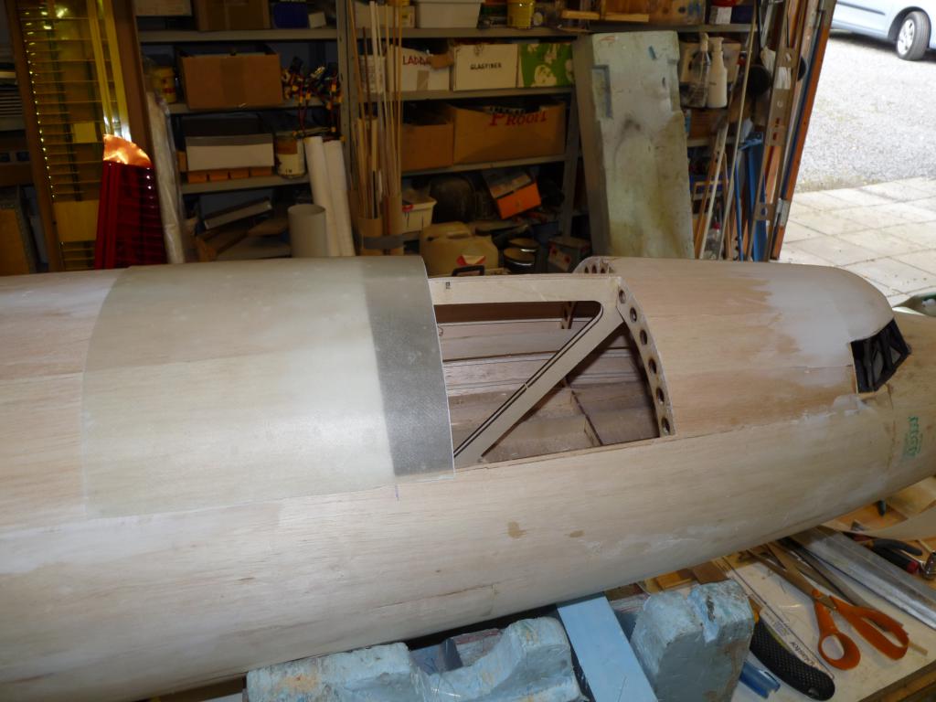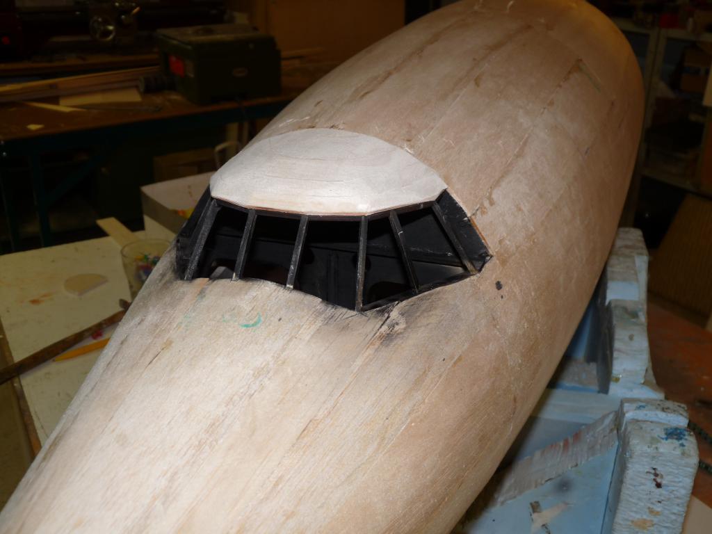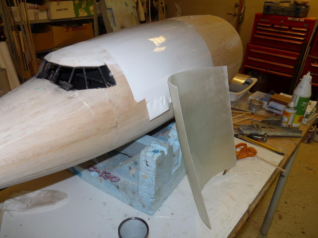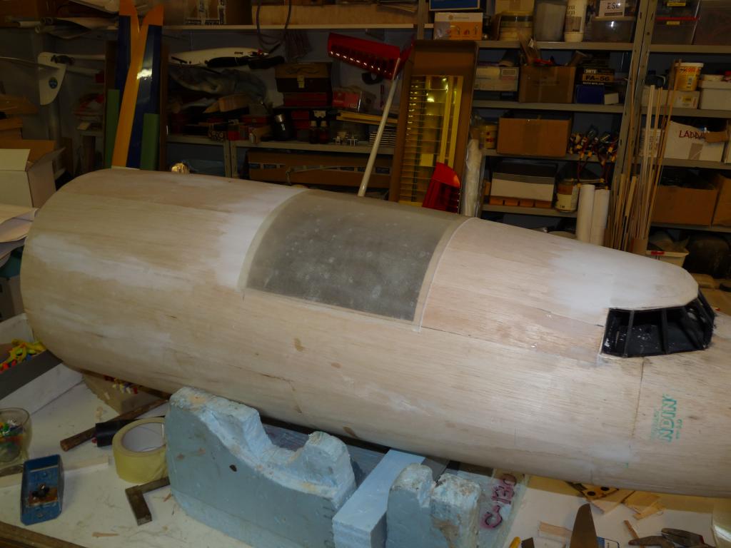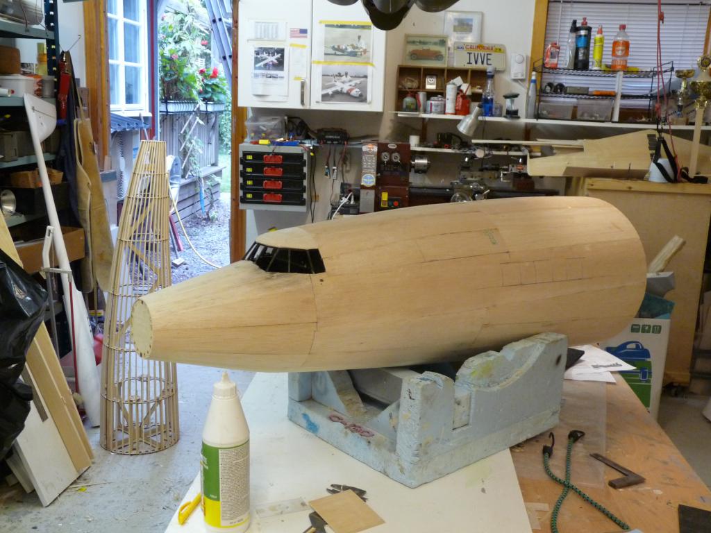 -Plankningnen av nosdelen börjar nu se sitt slut,kan inte ha gått åt mer än några kvadratmeter balsa bara..