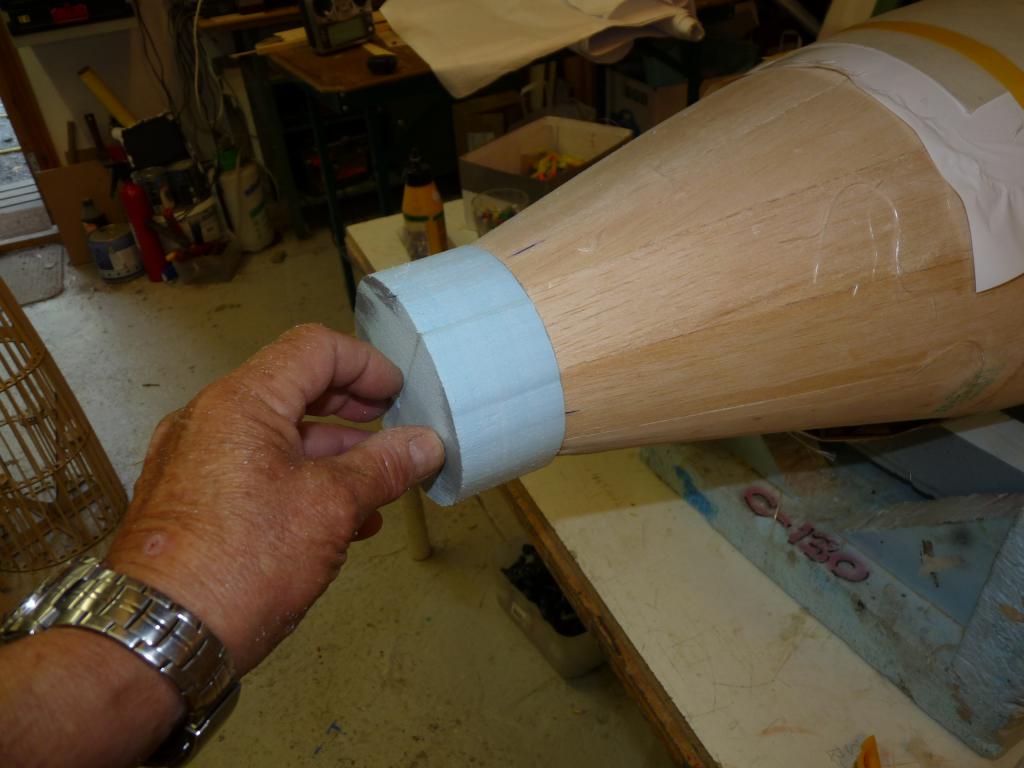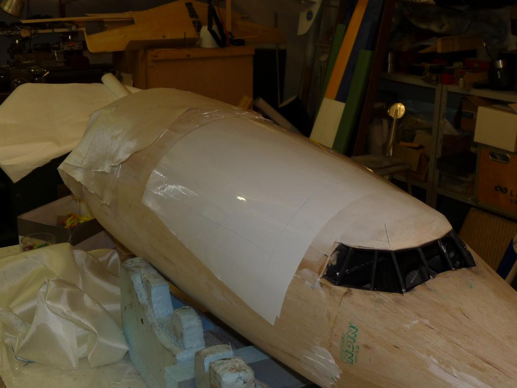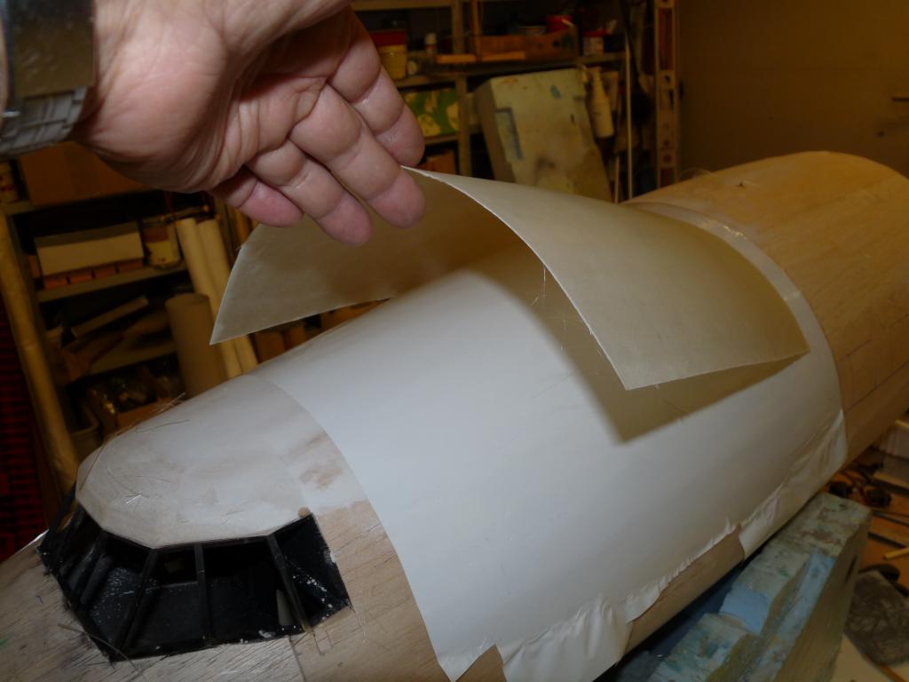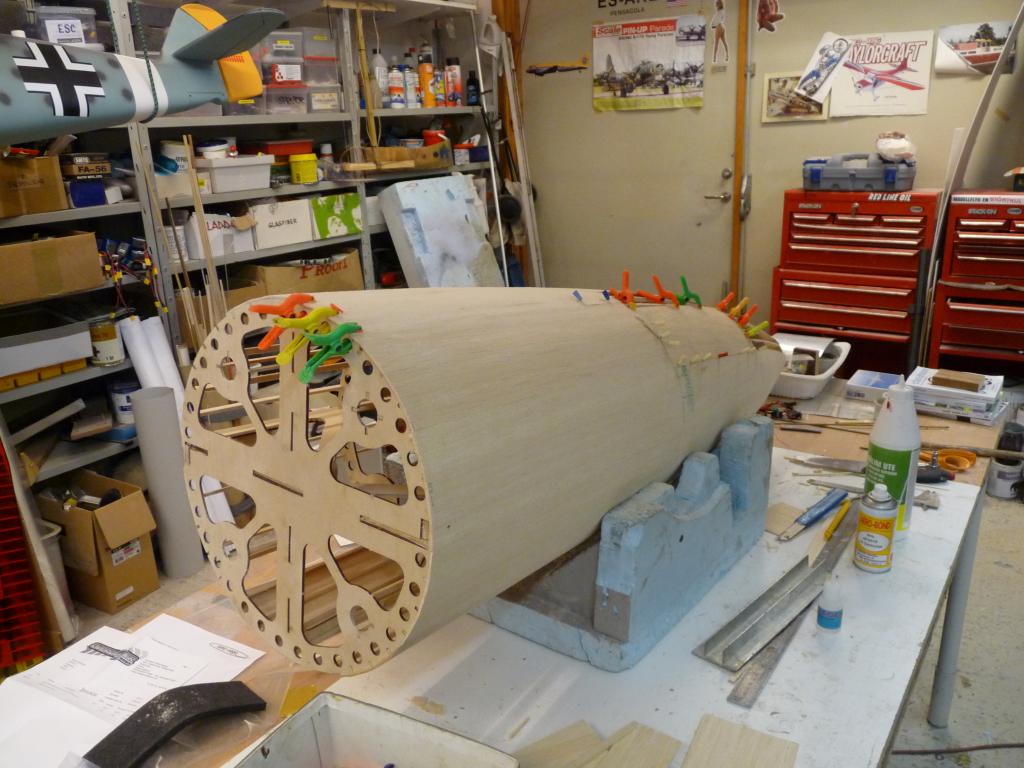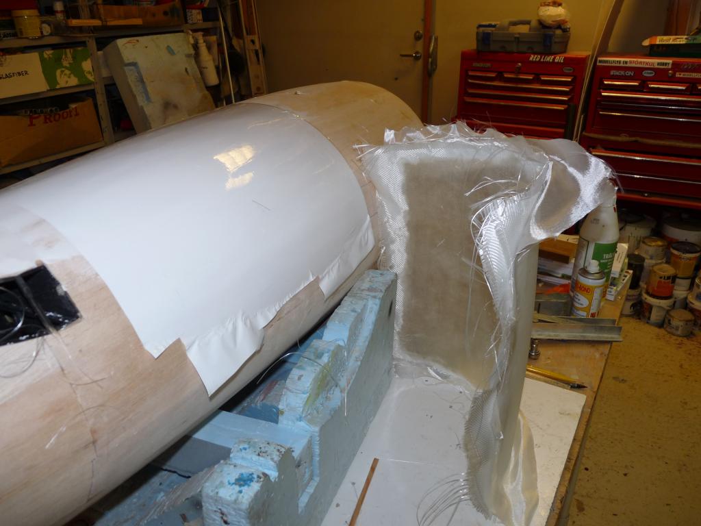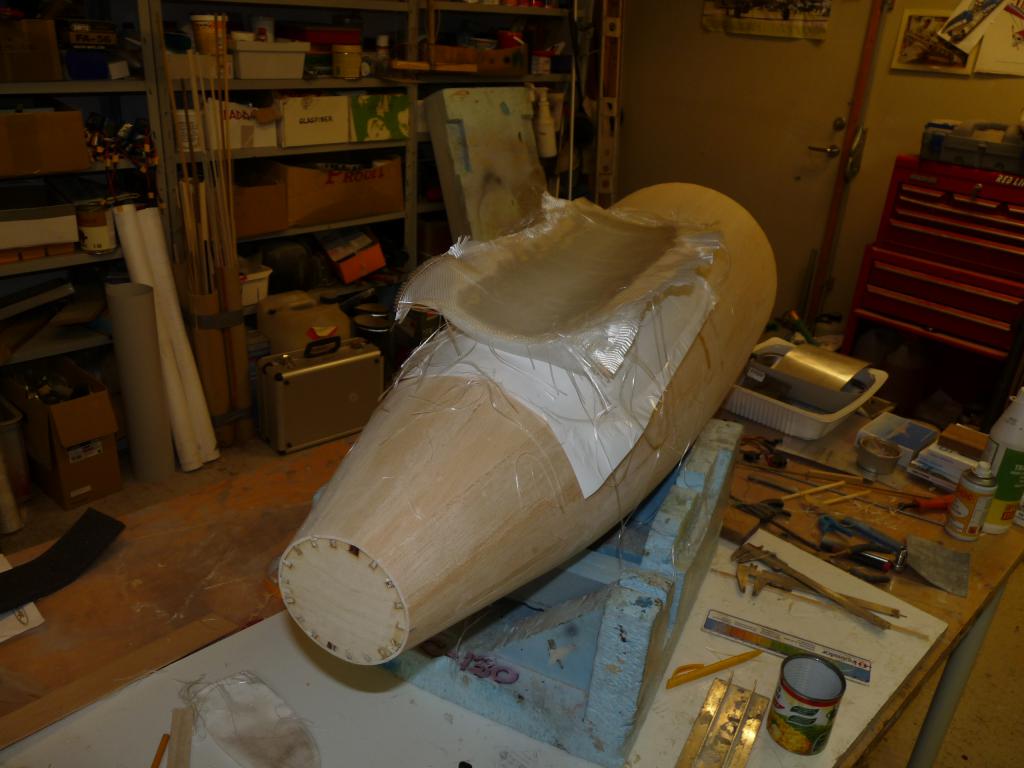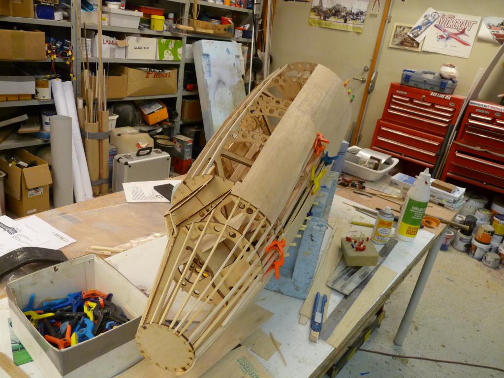 Enl. uppgift så plankas det vilt i byggboa/hangaren..Nosdelen börjar ta form och det ska göras en avgjutning/plastning