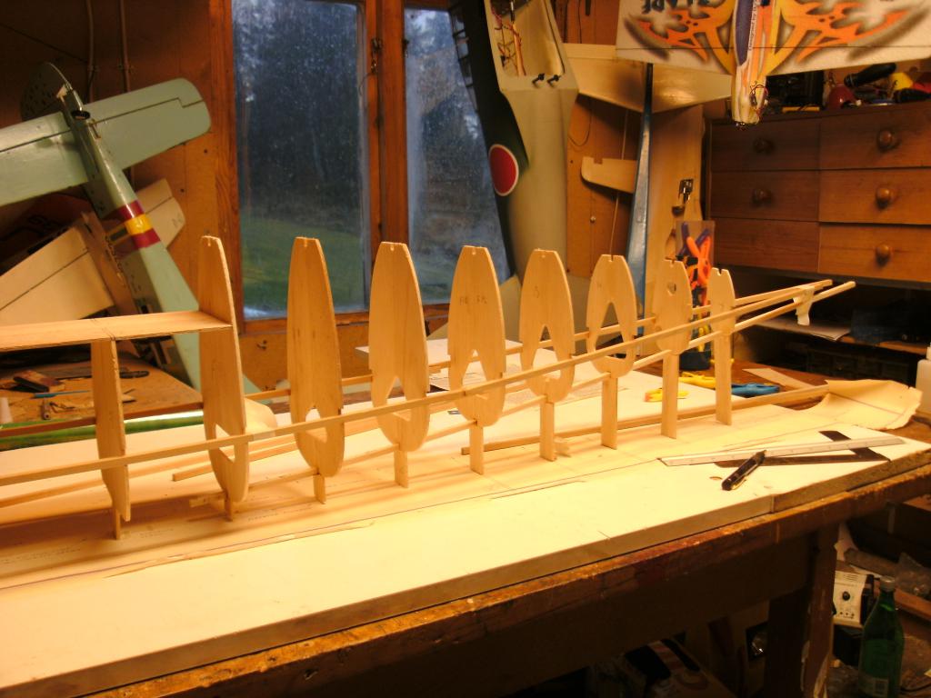 Är väl inte många som tänkt bygga denna mer än jag. Finns som shortkit hos platt tror jag, det mesta i glasfiber ock olika plastdetaljer. Fick tag i den som byggsats påbörjad med färdigspryglad vinge. Ställ ock spinner + kåpor ock hjul.