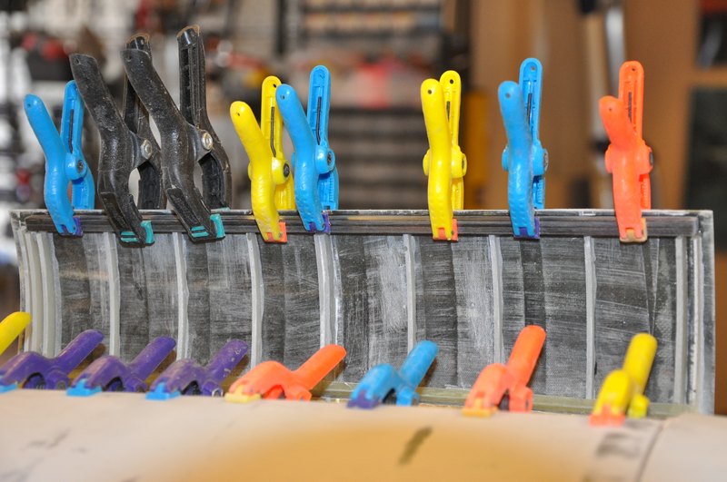 Kolfiberrör som förstärkning längs mittenkanten.