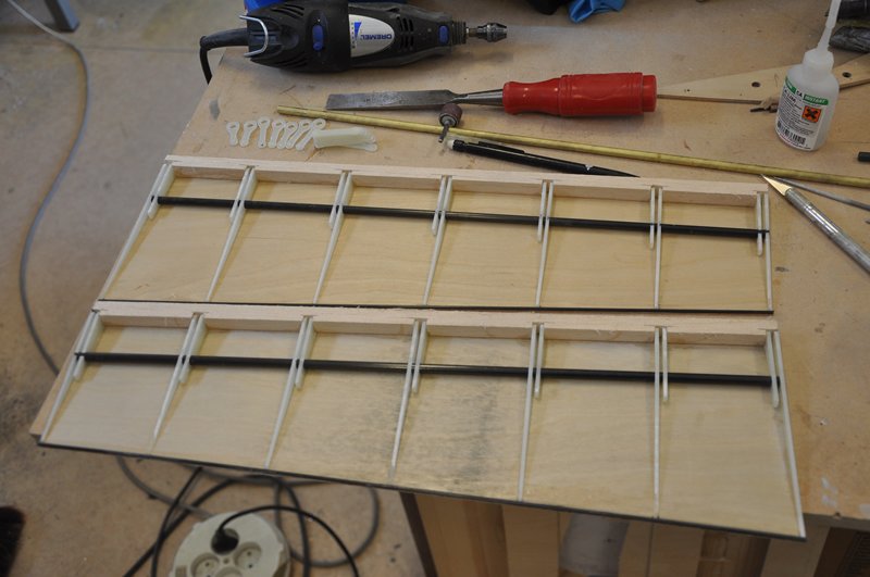 Eftersom klaffarna befinner sig där jag vill ha dem så är det dags att börja installera stötstängerna och servona.