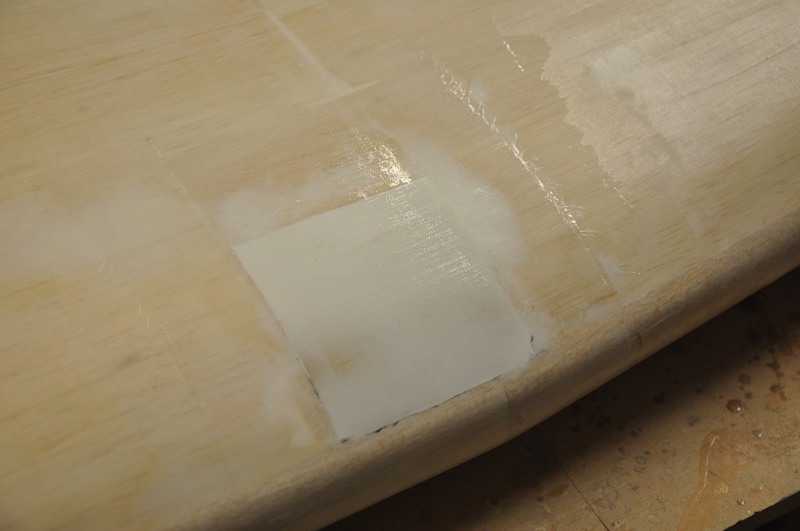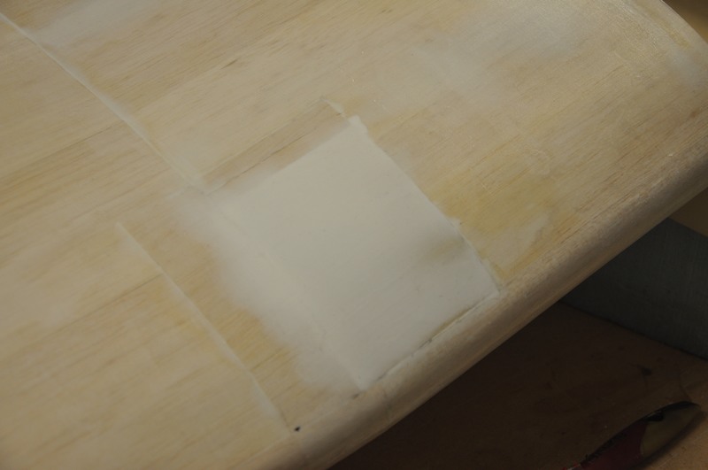 Jag upptäckte till min stora förvåning att jag har slipat på tok för mycket på balsa bitarna som jag fällde in i plankningen där den var skadad....det var ganska tunt på dessa ställen...så pass tunt att min fina högertumme gick rakt igenom.
