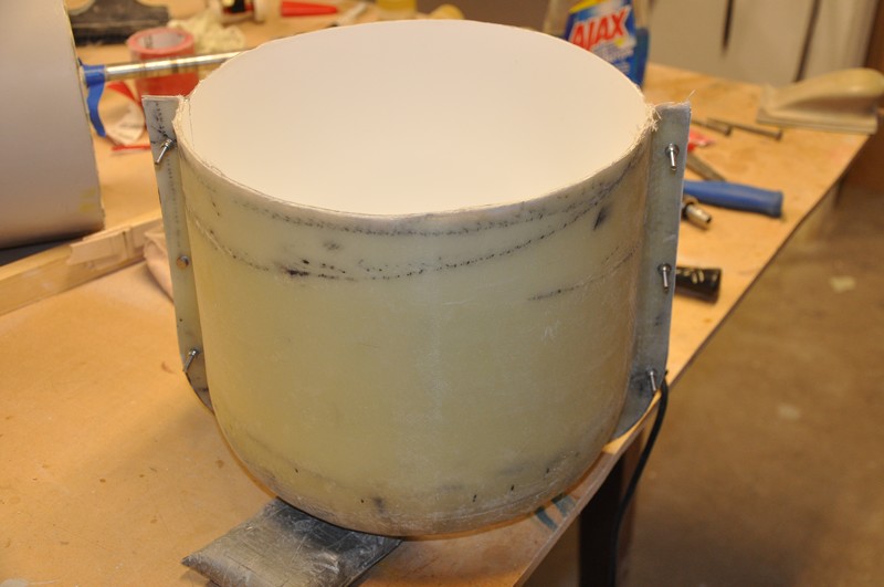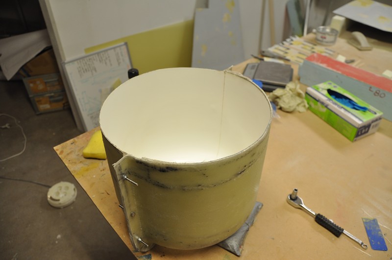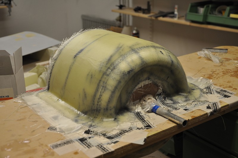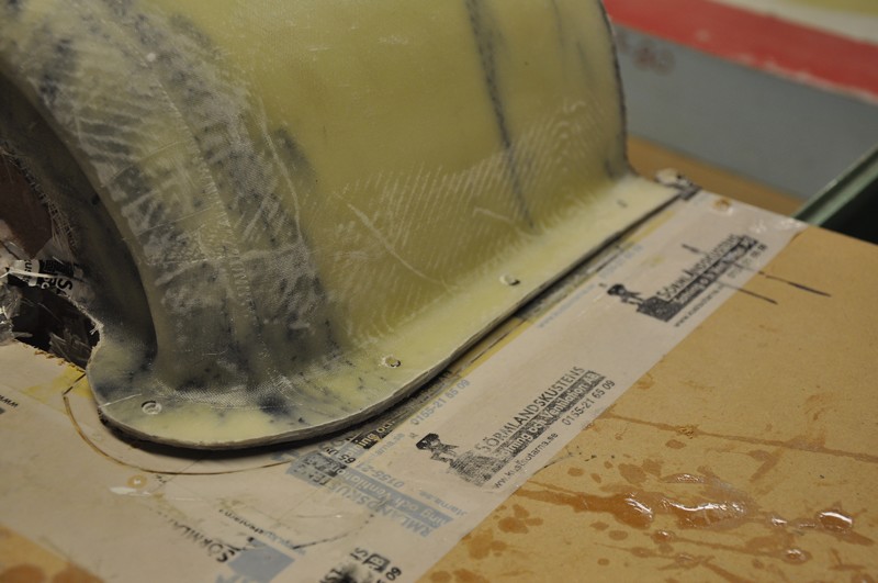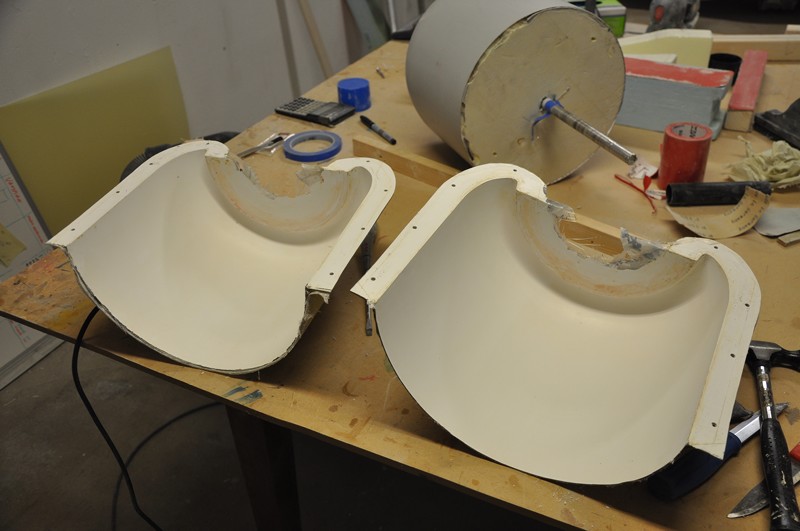 Men först fick jag snygga till kanterna och borra 8 hål för bultarna som skall hålla samman formen när jag gjuter kåporna.