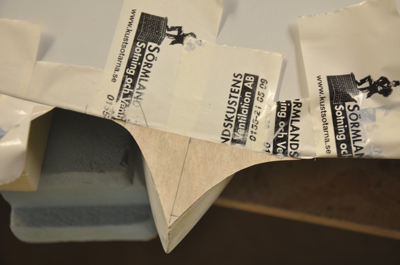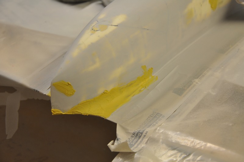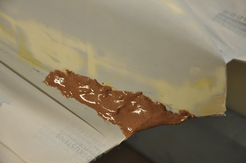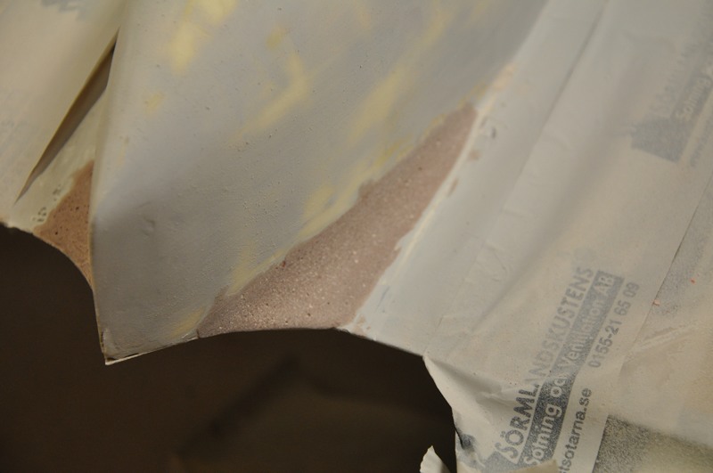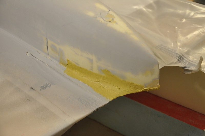 När tejpen var på plats så var det bara till att lägga på 4 lager med sprutspackel över pluggarna.