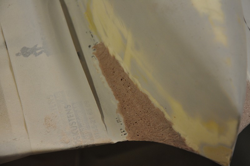 Jag använde pekfingret när jag smetade på spacklet. Det är mycket lättare att få ner det i porerna och få till en jämn och bra yta att börja slipa på än när jag använder en spackelspade.